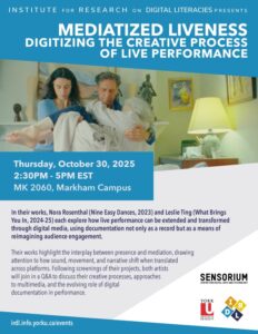 In their works, Nora Rosenthal (Nine Easy Dances, 2023) and Leslie Ting (What Brings You In, 2024-25_)_ each explore how live performance can be extended and transformed through digital media, using documentation not only as a record but as a means of reimagining audience engagement. Their works highlight the interplay between presence and mediation, drawing attention to how sound, movement, and narrative shift when translated across platforms. Following screenings of their projects, both artists will join in a Q&A to discuss their creative processes, approaches to multimedia, and the evolving role of digital documentation in performance.